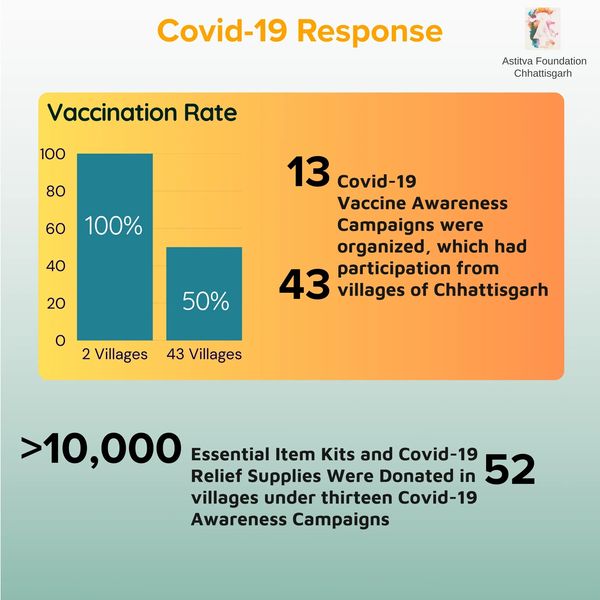 In response to the COVID-19 crisis, Astitva Foundation Chhattisgarh launched focused relief and awareness initiatives to support communities across rural and underserved regions of the state. Understanding the critical importance of health education and vaccination, the foundation organized extensive community outreach and vaccination awareness drives in multiple villages.